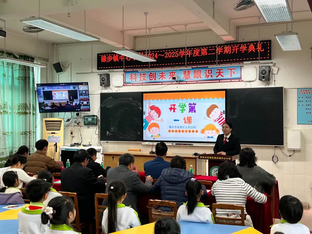 高要法院禄步法庭联合禄步镇司法所等单位走进禄步镇中心小学,罗妙芬法官通过“现场授课+电视直播”的形式,以法治副校长的身份为全校一千多名学生讲授了一堂精彩的“开学法治第一课”。
