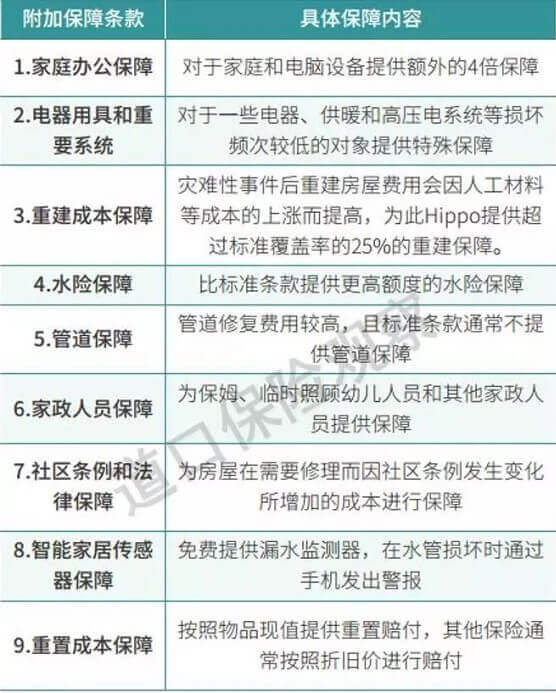 在传统的租客保险保障条款之外,Hippo增加了家庭办公保障、电器、重建成本保障、智能传感器等9项附加保障内容。