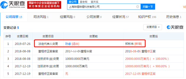 陈睿卸任上海哔哩哔哩法定代表人,郑彬炜接任