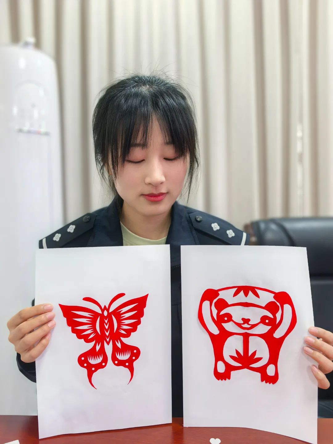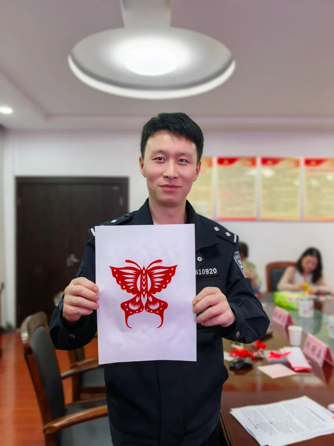 随后,镇巴剪纸传承人郝明森向干警们展示了镇巴剪纸魅力,通过图文并茂的方式,详细讲解了剪纸历史和传承,并现场指导干警制作剪纸作品,其精湛的技艺与手法,让大家深刻感受到了非遗文化之美,无不沉醉于剪纸的魅力中。不少干警还充分发挥想象力,在模板中加入自己的创意,得到了老师的高度肯定。