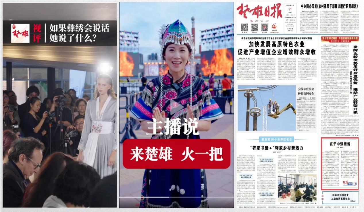 策划两届楚雄时装周、彝族火把节等主题宣传,全平台话题曝光量超30亿次,彝绣文化宣传片《绽放》《流光溢彩 美美与共》被美联社、法新社等130余家媒体转载,助推楚雄文化国际传播。
