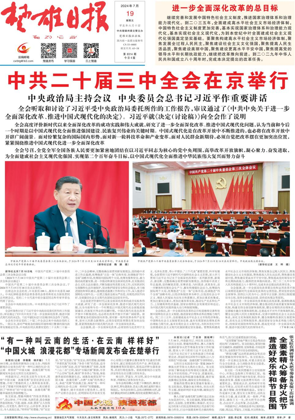 2024年11月27日,《人民日报》10、14版刊发楚雄优化考核、生产报道