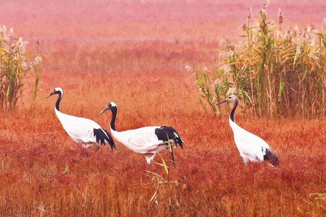 辽河三角洲湿地总面积近60万公顷,是东亚和澳大利亚鸟类迁徙路线上的重要栖息地和驿站,是丹顶鹤,黑嘴鸥等珍稀水禽繁殖的地方。在这里一望无际的“红地毯”形成天下奇景,有着绵延数百平方公里的芦苇荡,还有丹顶鹤、黑嘴鸥和斑海豹等众多珍稀动物和鸟类,构成了丰富多彩的湿地生态系统。辽河三角洲湿地内的双台河口自然保护区,被誉为“百鸟天堂,鸟类乐园”,历年停歇的丹顶鹤有400余只,白颧360余只,白鹤430余只,分别占世界其野生种群的25%、20%、20%。另外,保护区内濒危物种有黑嘴鸥,全世界仅有3000余只...,保护区内就有2000余只。 【 详细>>】