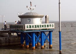 5月18日下午,在无锡沙渚水源地,记者发现,取水口向湖心延伸了3公里。湖面上风生水起,略发黄的湖水翻起阵阵浪花。在太湖水源地实时监测平台上,实时监控系统显示着取水口湖水的氨氮、高锰酸钾、叶绿素A、PH值等指标。水厂工作人员告诉记者,水质一旦出现异常情况,监测系统可以立刻报警,相关人员就可以采取紧急措施。