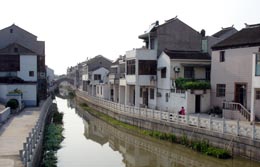 5月16日下午,在常州漕桥河小流域治理示范点,记者看到,河道两岸布满民居,河道里种有水葫芦等植物,略呈黄色的河水静静地流淌。