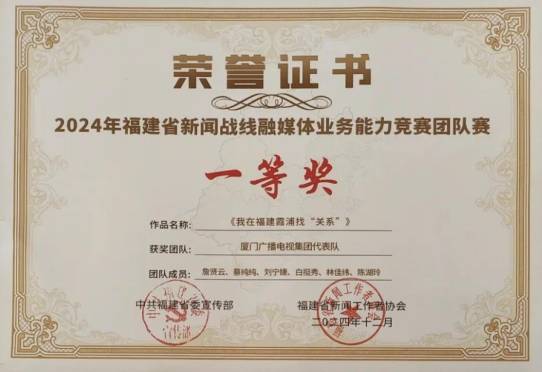 (厦门广播电视集团代表队获2024年福建省新闻战线融媒体业务能力竞赛团队一等奖)