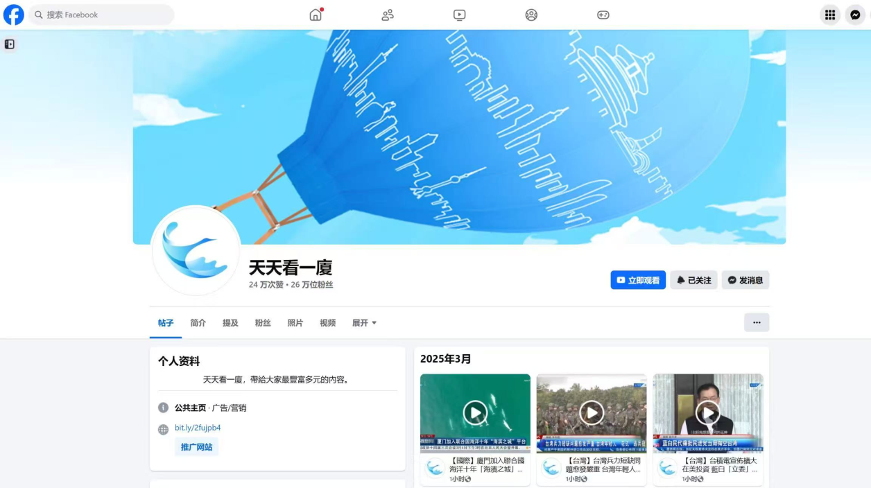 (厦门卫视已在Facebook开设账号)