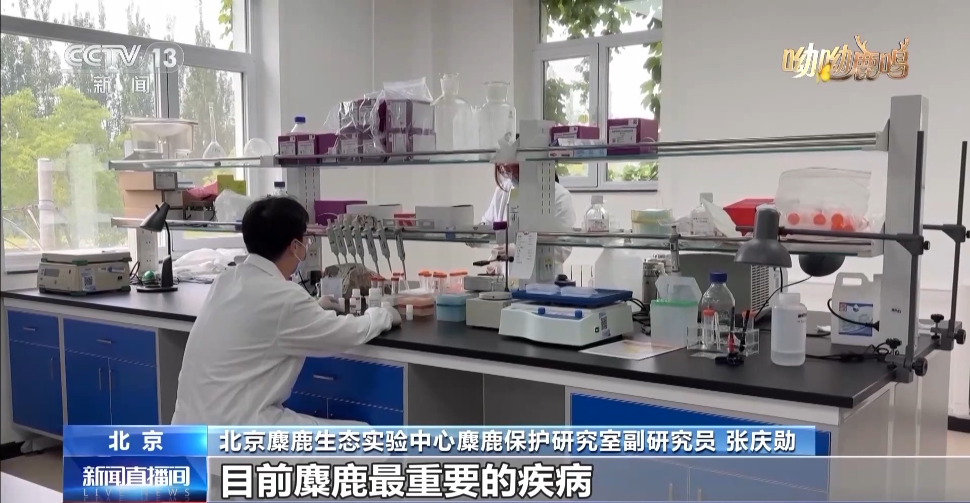 北京麋鹿生态实验中心麋鹿保护研究室副研究员 张庆勋:主要是采集麋鹿的血液、粪便等等,以及它伴生的动物,包括环境相关的一些样品,评估整个种群的健康状况,以及对它是否有一些比较重要的传染病进行监测。目前麋鹿最重要的疾病就是出血性肠炎,研发了一些快速可视化的检测方法,能对疾病快速进行诊断。