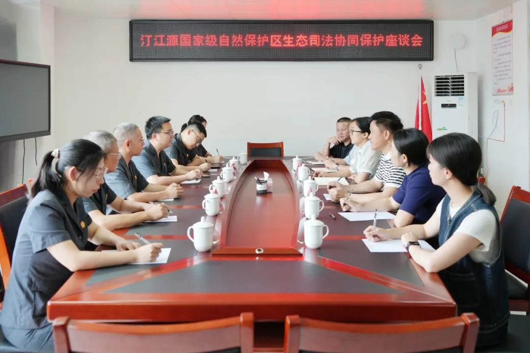 活动最后,龙岩中院、长汀法院、汀江源保护区管理局、庵杰乡政府开展座谈交流,就进一步加强汀江源自然保护区司法协同保护工作开展会商。座谈期间,与会代表围绕自然保护区建设管理、资源管护、执法司法衔接等工作进行了深入的交流和探讨,明确当前工作的不足,为今后协同共护工作的开展提供了新的思路和方向。各方表示将以此次交流为契机,凝聚智慧、携手共进,推动形成自然保护区跨部门司法协同保护新格局。