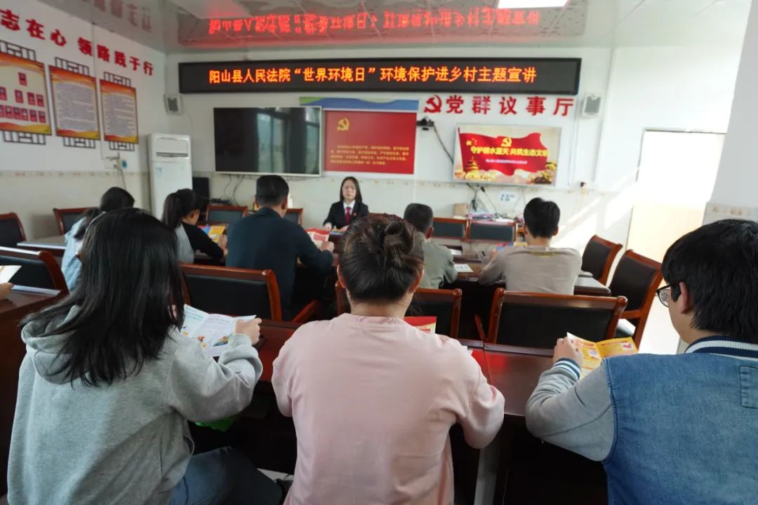 6月5日,阳山法院干警到黎埠镇、杨梅镇等地开展环境保护普法宣传活动,以法治力量筑牢辖区生态环境防线。