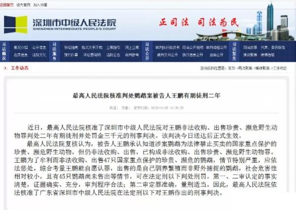近日,“深圳鹦鹉案”二审判决经最高人民法院核准正式生效,被告人王鹏被判处有期徒刑二年。该案引起社会广泛关注。