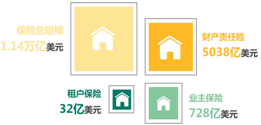 以2015年美国租赁市场4200万套房屋租赁、40%租户渗透率及188美元/年的保费计算,租户保险保费规模约32亿美元,占住户保险规模不足5%。