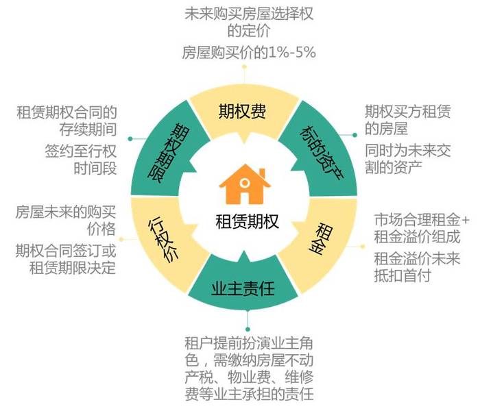租赁期权一般由期权费、期权期限、标的资产、行权价、租金、维护费六个要素组成,均由业主与潜在购房者(租户)协商决定。