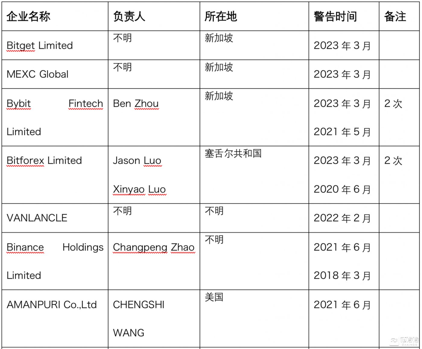 经链得得统计,迄今为止被日本金融厅发出警告令的海外加密行业企业有12个,其中Bybit和Binance均为2次警告,链得得在之前的文章中也提到了日本金融厅的警告措施。