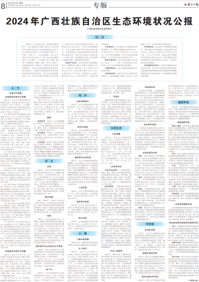 2024年广西壮族自治区生态环境状况公报