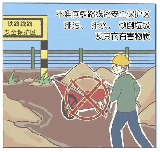 《铁路安全管理条例》第二十九条规定:禁止向铁路线路安全保护区排污、倾倒垃圾以及其他危害铁路安全的物质。