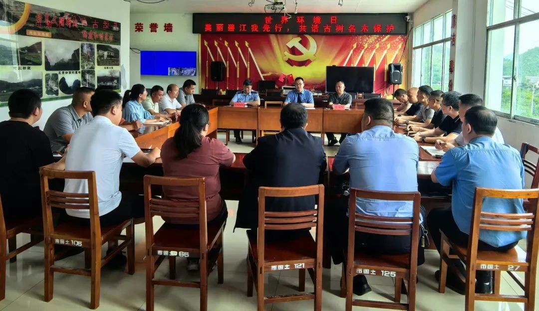 6月5日,碧江法院、碧江检察院共同签发《古树名木司法保护令》对碧江区辖区内的一颗千年乌柿树(俗称金弹子)实施“一树一策”保护。明确禁止在保护范围内堆放垃圾、刻划树干等七类禁止性行为。同时,联合区公安分局、区林业局、辖区办事处及村委会等部门召开“古树保护司法协作座谈会”,建立多部门、多维度、多层次的立体保护格局,并当场解决两处危害树体问题。会后,碧江法院、碧江检察院联合向辖区办事处送达《古树保护工作建议函》,提出增设保护围栏、清理古树周边堆放物等具体建议。