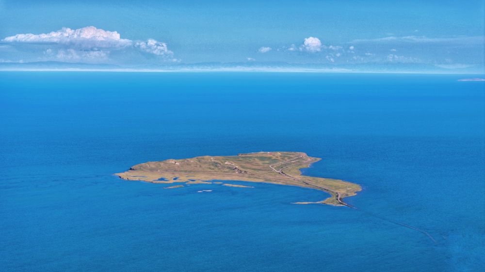 在青海省海北藏族自治州刚察县拍摄的青海湖(无人机照片)。新华社记者 白玛央措 摄
