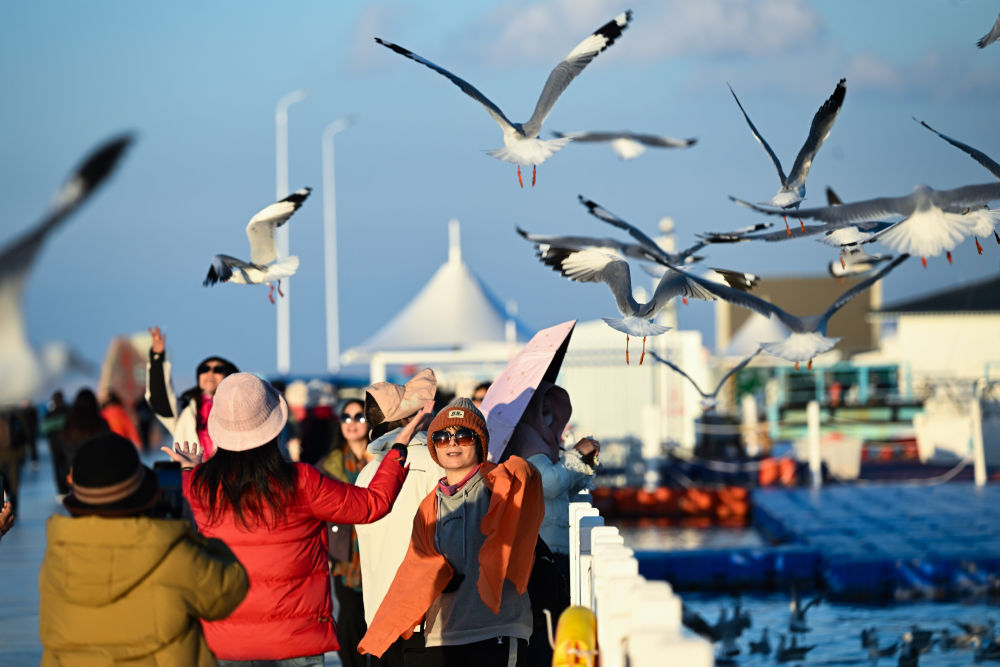 初夏,中国最大内陆咸水湖青海湖犹如一颗璀璨蓝宝石镶嵌在高原,吸引四面八方游客前来探访。在青海湖鸟岛国际重要湿地,鸟儿展开双翼,以优雅的姿态在水天之间自由翱翔。