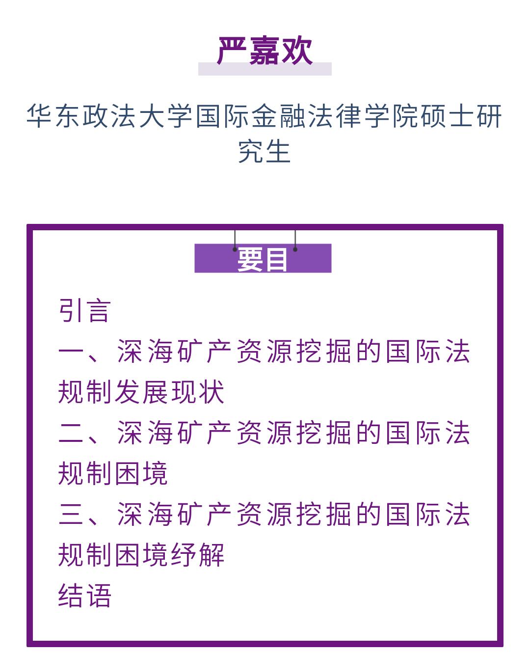 原标题:《严嘉欢|深海矿产资源挖掘问题的国际法规制困境纾解》