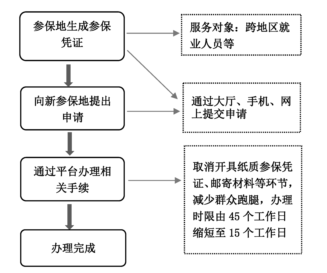 1.再造医保关系转移接续流程。通过升级改造省级医疗保险关系异地转移平台,取消省内参保人员往返参保地开具参保凭证、邮寄纸质转移材料等环节,将医疗保险关系转移接续办理时限由国家规定时限45个工作日缩短至15个工作日,实现医疗保险待遇享受的无缝衔接。
