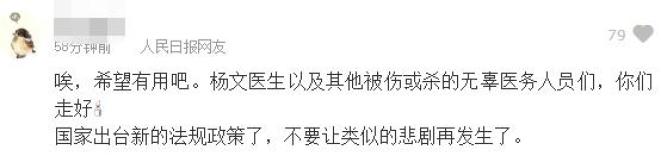 古人云:不为良相,就为良医。医生,在我们绝大多数人的心目中都是一个神圣的职业。虽然不可避免地出现医患之间的摩擦,但绝大多数都可以妥善解决,发生在杨文医生身上这样的悲剧,除了医患之间的矛盾之外,更显示出人性的一种扭曲。