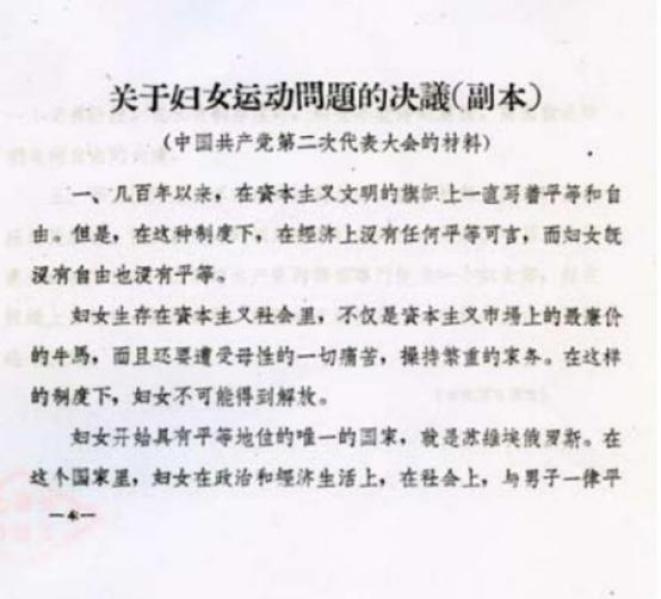 (这是中国历史上首次以政党名义提出的妇女运动决议)
