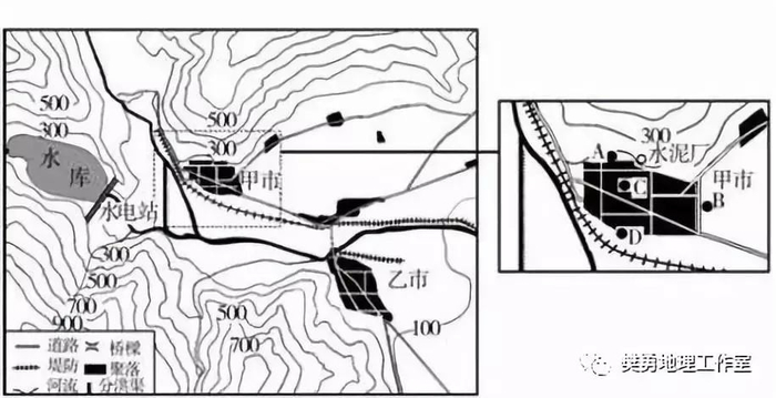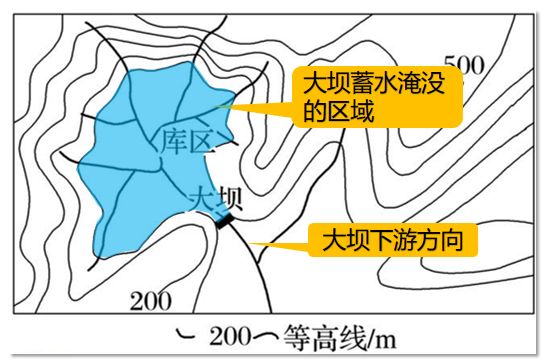大家还记得大坝(水电站)在等高线地形图中的位置吗?