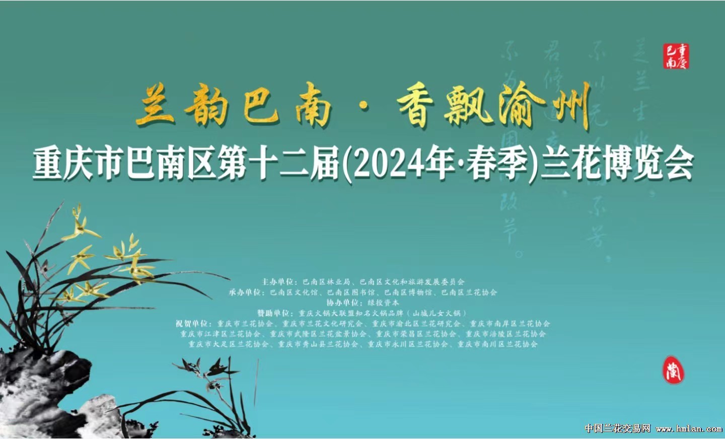 【十五】2024年2月22日-24日,重庆市巴南区第十二届(2024.春季)兰花博览会将在重庆 巴南区文化馆一楼平面艺术展厅举办。联系人:王伦:13308379388 朱茂:18723333316 陈杰:136383333366