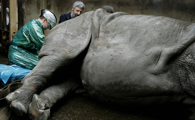 45岁的苏丹,已经到了犀牛寿命的上限,过去一年里,它饱受右后腿感染溃烂之苦,几乎不能行走。在各种治疗均无法缓解它的痛苦的无奈下,保护区的工作人员为它实施了安乐死。