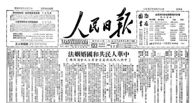 1950年,新中国第一部法律《婚姻法》确立了婚姻自由、一夫一妻、男女权利平等的婚姻制度;