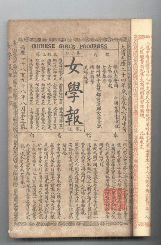 《女学报》是中国第一份妇女报刊。1898年7月24日创刊于上海,由中国女学会主办,主笔为康有为的女儿康同薇、梁启超的夫人李蕙仙等。