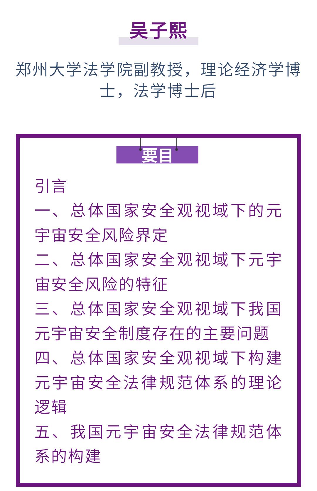 原标题:《吴子熙|总体国家安全观视角下元宇宙安全法律规范体系研究》