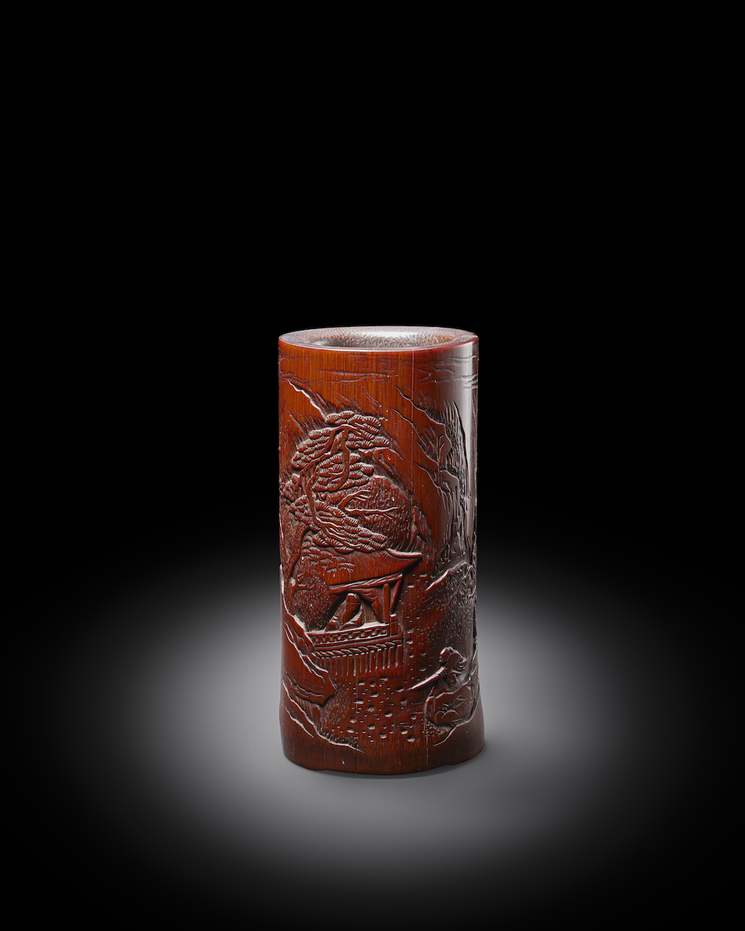 嘉定竹刻  凉亭消夏图笔筒(王威)
