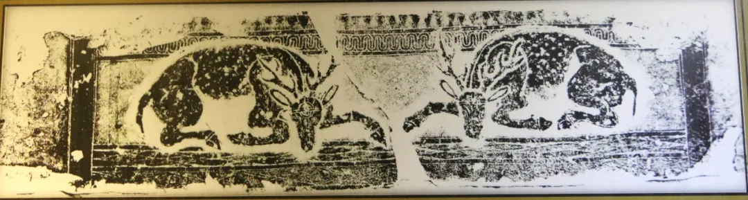 “一候鹿角解,二候蜩始鸣,三候半夏生”,这是古人对夏至三候的描述。在山东一些画像石中,似乎能寻觅到这些物候的影子 。如出土于山东福山东留公村汉墓中的画像石,中心图案为两鹿对首而卧,占据了画面的中心和大部分位置,细节刻画精细,鹿首有犄角,五官和身上的斑纹清晰可见,姿态安然恬静 。