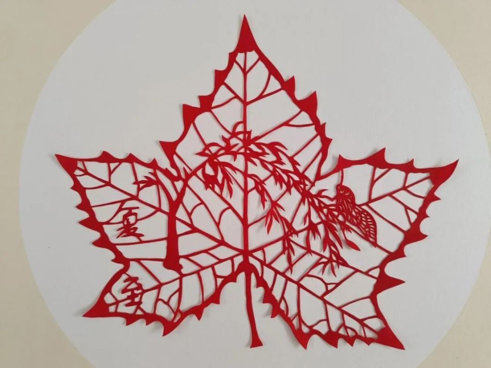 民间刻纸《夏至》中,刻一蝉趴在柳枝上,振翅欲鸣,那薄如轻纱的翅膀被刻画得栩栩如生,仿佛能听到它在夏日里奏响的乐章,一种浓郁的夏至氛围触目可见 。