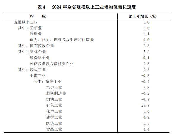 全年全省全部工业增加值9887.04亿元,按不变价格计算,比上年增长2.2%。规模以上工业增加值同比持平。在规模以上工业中,分门类看,采矿业同比持平,制造业下降1.1%,电力、热力、燃气及水生产和供应业增长4.0%;分煤与非煤看,煤炭工业增长0.3%,非煤工业下降0.8%。
