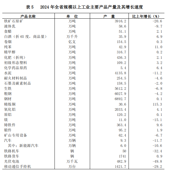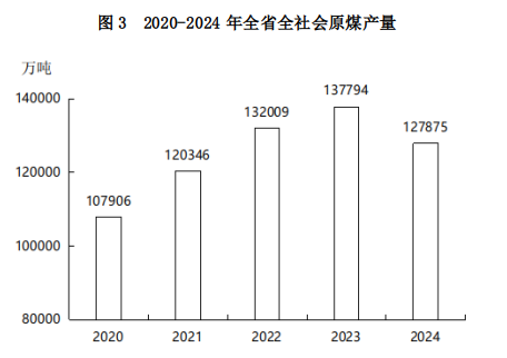 全年全省原煤产量127875.2万吨,比上年下降7.2%;焦炭产量9211.6万吨,下降3.9%;发电量4516.1亿千瓦时,增长1.2%;非常规天然气产量167.4亿立方米,增长14.7%。