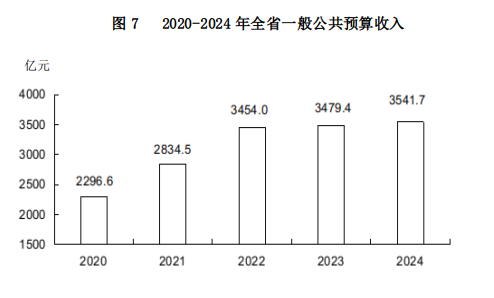 全年全省一般公共预算收入完成3541.7亿元,比上年增长1.8%;其中,税收收入完成2299.7亿元,下降10.1%;非税收入完成1242.1亿元,增长34.7%。