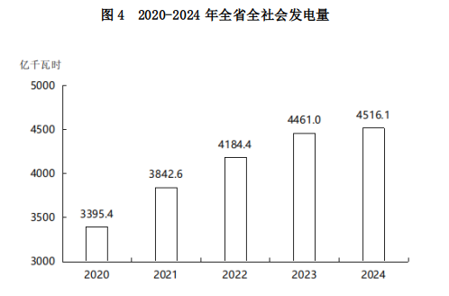 年末全省发电装机容量14516.6万千瓦,比上年末增长9.1%。其中,火电装机容量8197.7万千瓦,增长2.3%;并网风电装机容量2616.5万千瓦,增长4.7%;并网太阳能发电装机容量3476.8万千瓦,增长39.6%;水电装机容量225.6万千瓦,增长0.2%。