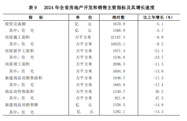 全年全省房地产开发投资1670.9亿元,比上年下降[10]5.1%。其中,住宅投资1368.9亿元,下降3.7%。