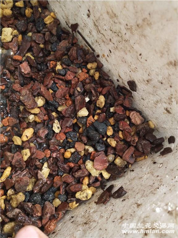 养兰新手,在种植之前一定要选择好植料,一款适合兰花生长的植料,应该具备三条基本性质,第一,需要具备较强的保水性,第二要具备较强的滤水性,第三,要具备兰花生长中所需的营养。第一条和第二条看似矛盾,实则统一,只要选择好植料,完全可以兼具保水和滤水两大性状。下面就来讲一讲兰花种植小常识之老三样:兰花植料中的老三样由火山石(或火烧土),植金石,松树皮构成,现在讲一讲这三种植料的特点,配比我按照等比例混合。先说植金石,植金石是一种质轻,孔细的颗粒植料,市面上有各种规格,有大中小三种基本尺寸,产地以日本产的较好,植金石的质地轻,孔最为细小,因此保水性很好,吸水性不错,在兰花颗粒植料中主要起到保水,滤水的作用,但价格偏贵。火烧土,与碎砖粒一个道理,外表呈红色,孔比植金石大一点,密度比植金石大一些。火山石和火烧土一样,区别就在于火烧土为人工烧制而成,火山石为自然形成,火山石也是一种多孔的植料,但孔比植金石和火烧土都要大,密度大,质地硬,且不易粉化,因此滤水性很好,但保水性能要比植金石和火烧土要差一些,我在选择植料时,选择用火山石和植金石搭配,这两种颗粒搭配使用,既可以起到较强的保水性,又能起到较强的滤水性。但由于植金石价格较贵,有些兰友用碎砖粒代替植金石,这也是可以的。老三样中,植金石和火山石不能提供兰花生长中所需的有机肥料,因此,树皮在老三样中是比较关键的植料,有的兰友在使用树皮时总是会说容易黑根,其实这都是树皮选择不当引起的。在选择树皮时,应该选择质地厚,脱脂的树皮使用,质地厚的树皮有很多微孔隙,吸水保水性能一流,且不易粉化腐烂,脱脂可以去除树皮的油份,让树皮更易于吸水保湿,且在分解过程中尽量少产生对兰根有害的油脂酸,因为油脂酸会影响根对水分的吸收,容易导致黑根情况。新手在上盆之前,应该对植料过筛,分出中颗粒个细颗粒,中颗粒用于种植,细颗粒用于铺面,过筛之后,需要清洗植料,洗去植料表面的粉尘(尤其是植金石和火烧土),对植料分级后,就可以待用了。老三样在兰花种植中只是基础料,不同的兰花在上盆种植时,会根据不同的兰性,加入不同的植料,如仙土,羊粪等。比如绿云,喜阴耐肥,那么可以在里面加入1份左右的仙土,或者0.5份的羊粪。总之,在种植过程中,应合理使用,灵活变通。另外,之前有兰友在论坛中请教选盆的问题,我这里也给出我的选择,我选用的不是平底盆,而是内凹的塑料盆,盆号为5号,最小的那种,为什么选这种形状呢?因为凹底的透气性强,且省植料。上盆一定不要用手,要用铲子,因为颗粒植料看似圆润,其实是石头,比较硬的,用手抓的话,时间长了,右手无名指和小拇指的指甲盖会被磨得很薄的,日久影响身体健康,别问我是怎么知道的