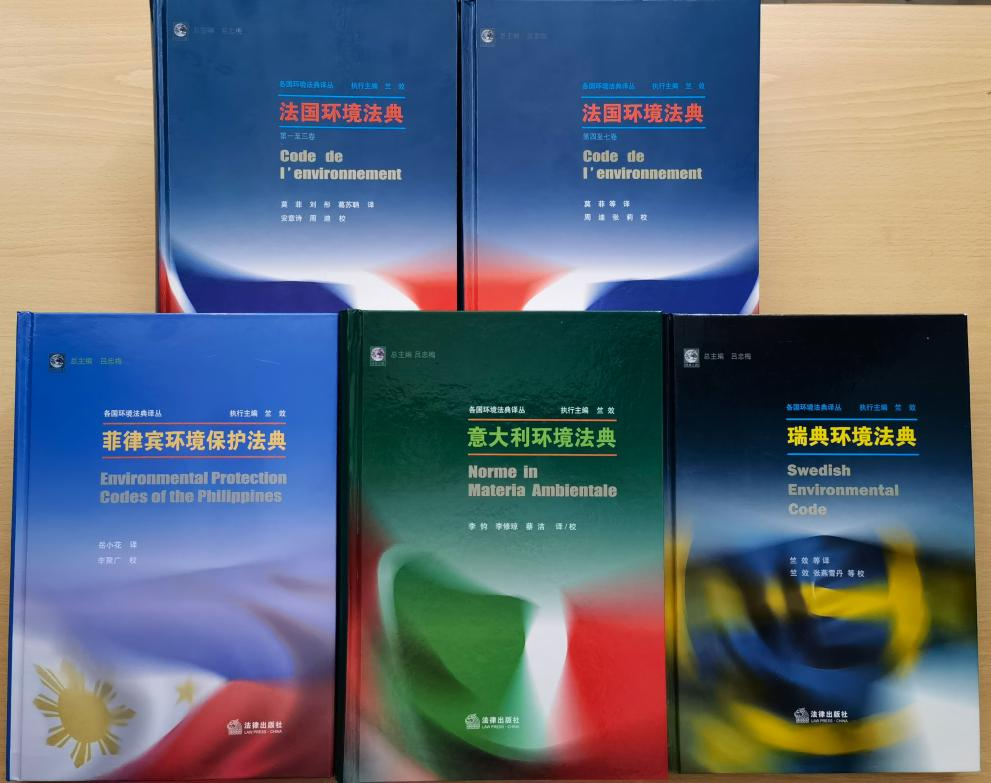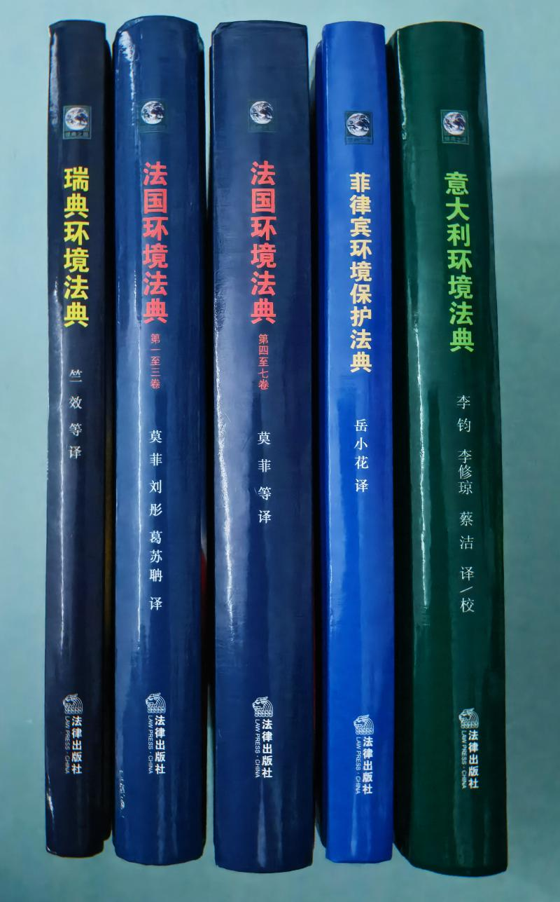 由吕忠梅教授总主编的“绿典之路”丛书的子系列之一“各国环境法典译丛”,由竺效教授担任执行主编,截止目前已经出版了《瑞典环境法典》《法国环境法典(第一至三卷)》《法国环境法典(第四至七卷)》《菲律宾环境法典》《意大利环境法典》5本(见下图)。《德国环境法典(草案)》《哈萨克斯坦生态法典》《独联体生态示范法典·爱沙尼亚环境法典(总则)》等将陆续出版。