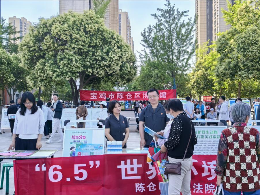 陈仓法院在区法治广场发送宣传彩页、典型案例宣讲等方式,向过往群众普及环境资源保护法律法规,展示环资审判“三合一”机制成效与司法修复理念,引导广大群众共建生态法治屏障。