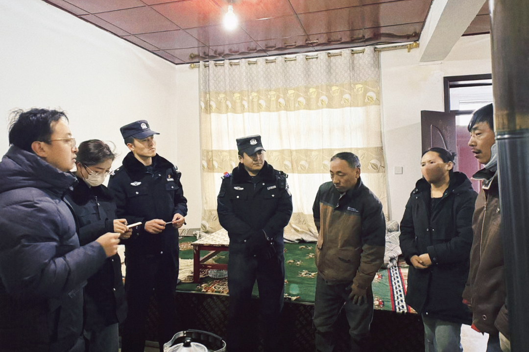 ▲郎木寺司法所联合派出所上门开展矛盾纠纷排查化解。