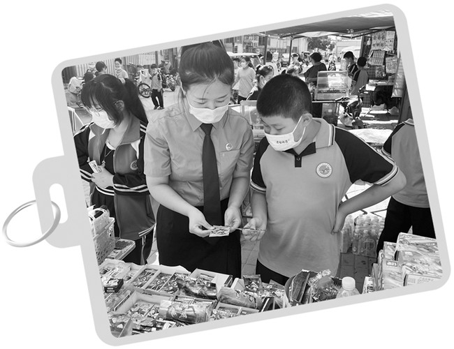9月1日开学日,河北省任丘市检察院检察官在校园周边商店对购买盲盒的学生进行引导,倡导其理性消费。