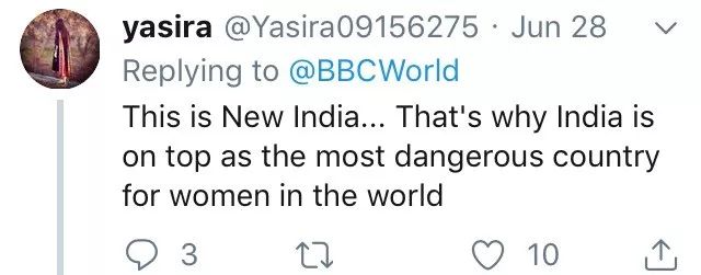 @Yasira09156275:这都是9012年的印度了……印度成为世界上对女性而言最危险的国家,还需要理由吗?