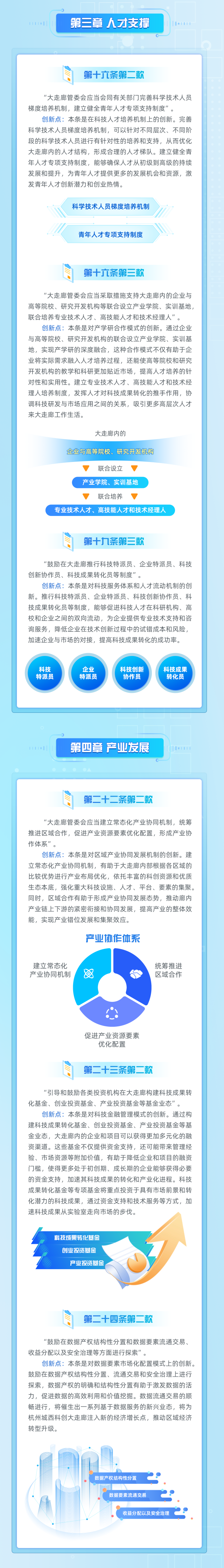 有了立法的指引,大走廊未来产业培育发展的方向也更加明确。《条例》第二十条至二十四条明确了大走廊重点发展战略性新兴产业和未来产业,建设全市未来产业策源地和核心区,重点投资战略性新兴产业和未来产业。“就在不久前,我们启动了‘中国云谷’建设,以大走廊为核心打造‘杭州AI’城市新名片。”城西科创大走廊管委会招商和产业发展局相关负责人说,接下去将以《条例》为基础,持续谋划杭州继互联网平台经济后的新经济增长极和下一个“黄金二十年”入场券。