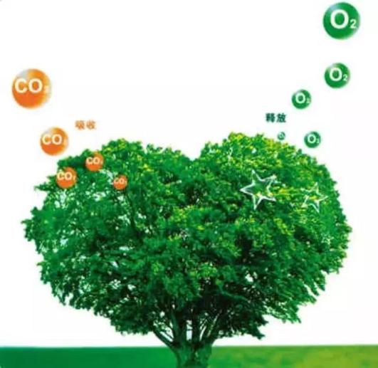 绿色植物通过光合作用吸收空气中的二氧化碳,利用太阳能生成碳水化合物,同时释放出氧气,从而维持了地球大气中二氧化碳和氧气的动态平衡,减少了温室效应。