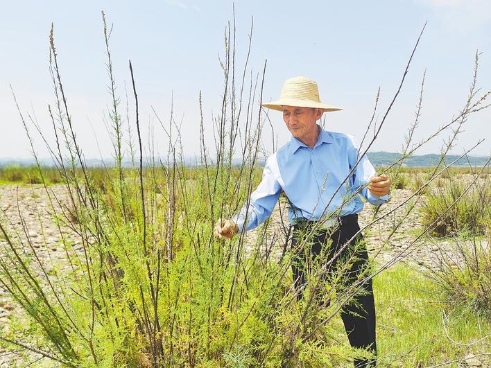 “你看,这株植物长到2米多,比人还高!”6月16日,枝江关洲岛烈日当空,77岁的薛传根例行乘艇上岛,看望他的“孩子”——疏花水柏枝。